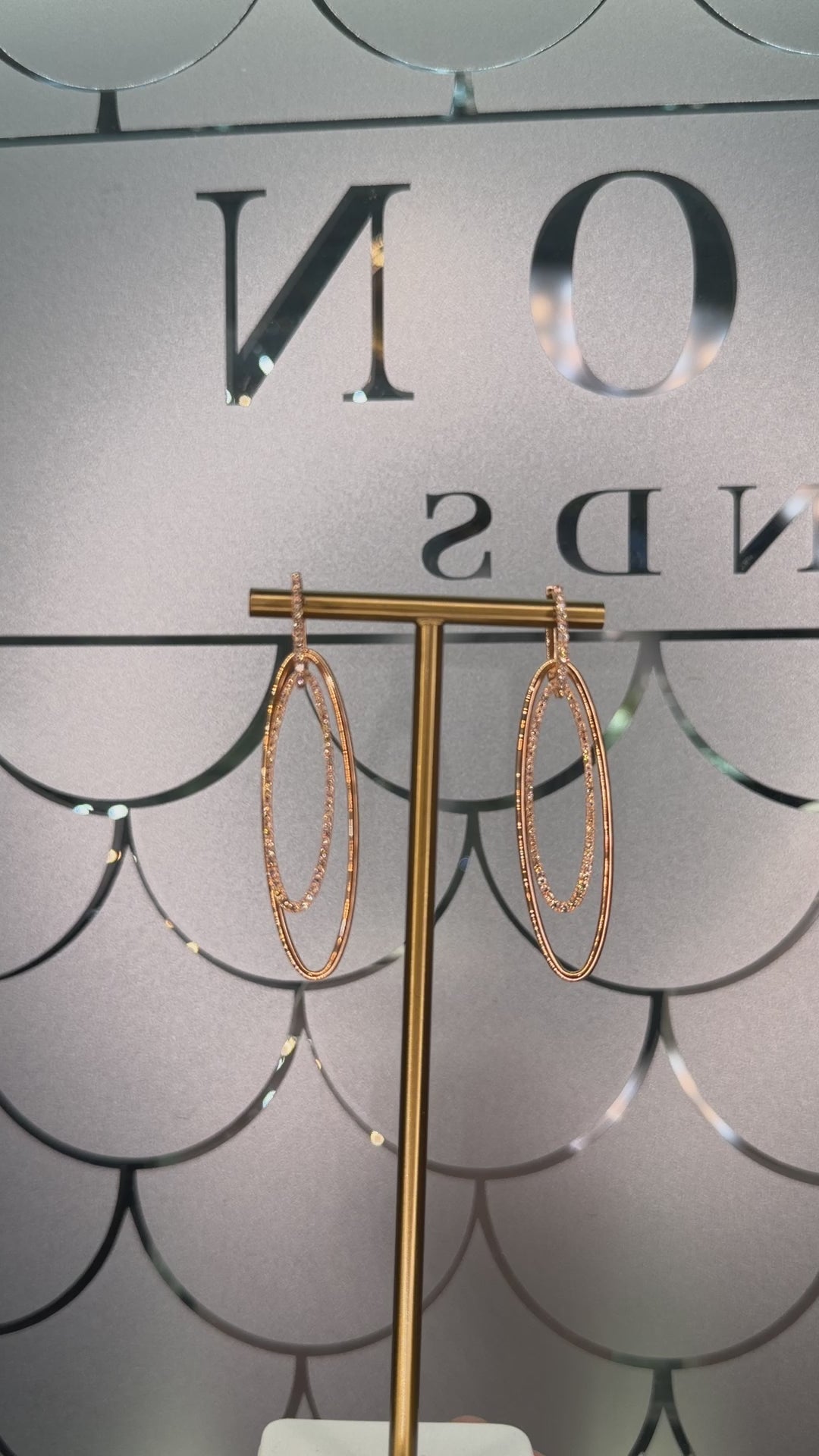 These luxury drop earrings are crafted in solid 18K rose gold and set with 2.14 ct of natural champagne-color diamonds. Designed with falling rings that create elegant movement, they offer a rare and refined look that stands out from classic styles.