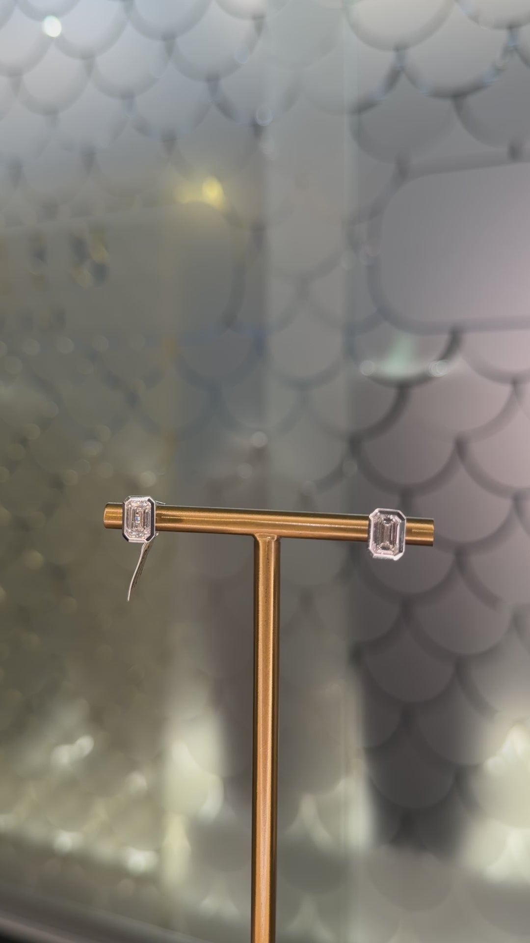 These elegant emerald-cut diamond earrings are crafted in 18K white gold with a smooth bezel setting that frames the stones beautifully. Each lab-grown diamond weighs about 1.10 ct and is graded E+ color and VVS2+ clarity, offering exceptional transparency and sophisticated sparkle.